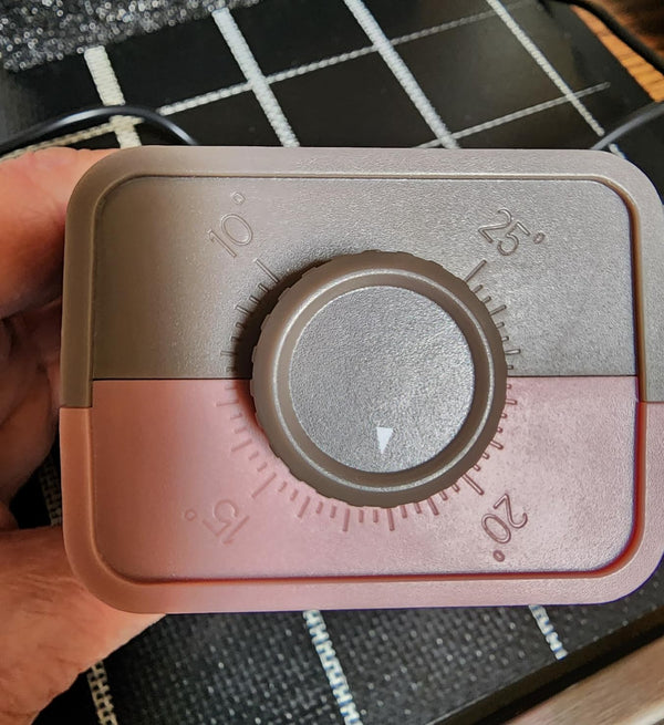 Rotate the angle adjustment knob to your desired angle (between 10°–25°) based on the knife type. Ensure the knob is securely set to avoid damage.